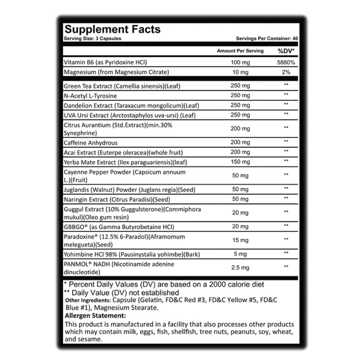 | Citrus Aurantium (Std.Extract)(min.30% Synephrine) | 200 mg |