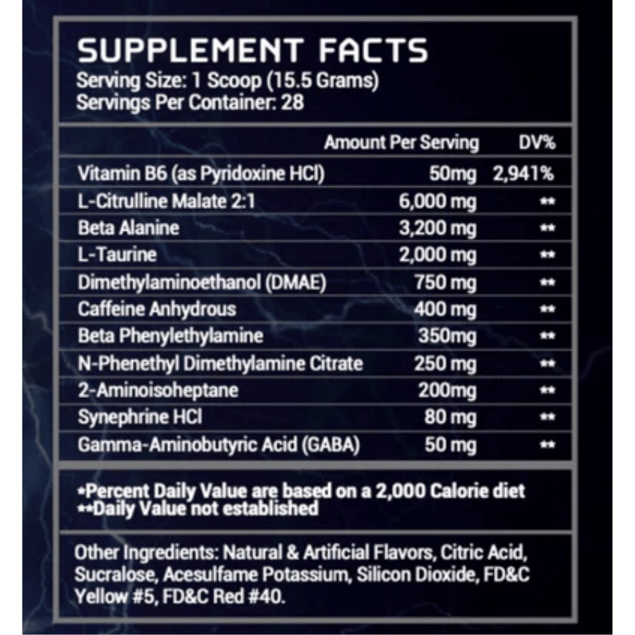 Maximum intensity warning! Contains exotic stimulants (DMHA, DMBA, DMAA) for experienced users only. Not for daily use β cycle with milder options throughout your week. Handle with respect.