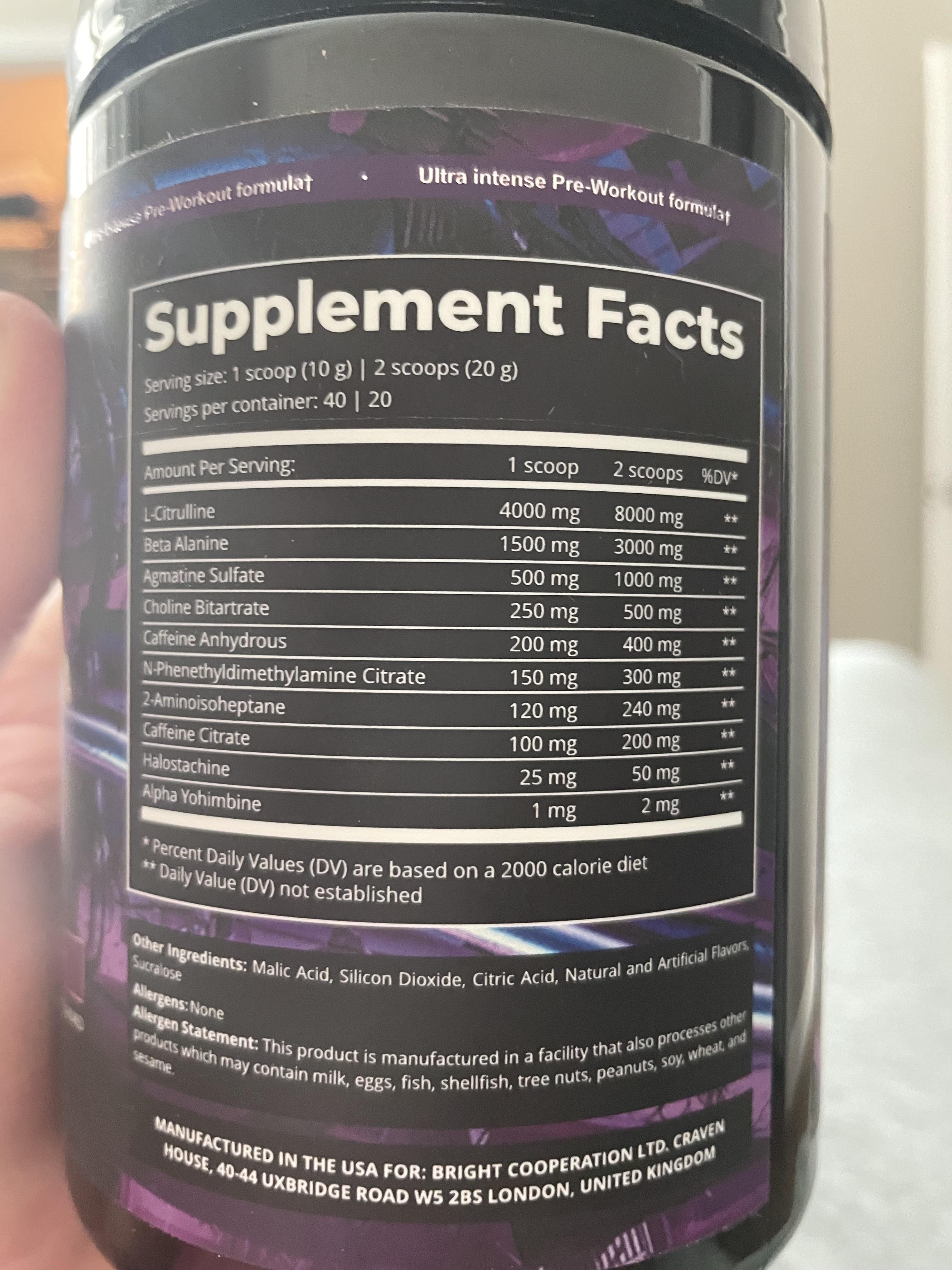 Zeus Pre-Workout is classified as Extreme intensity. This is a maximum intensity pre-workout containing exotic stimulants. It is designed for experienced users only and should not be used daily.