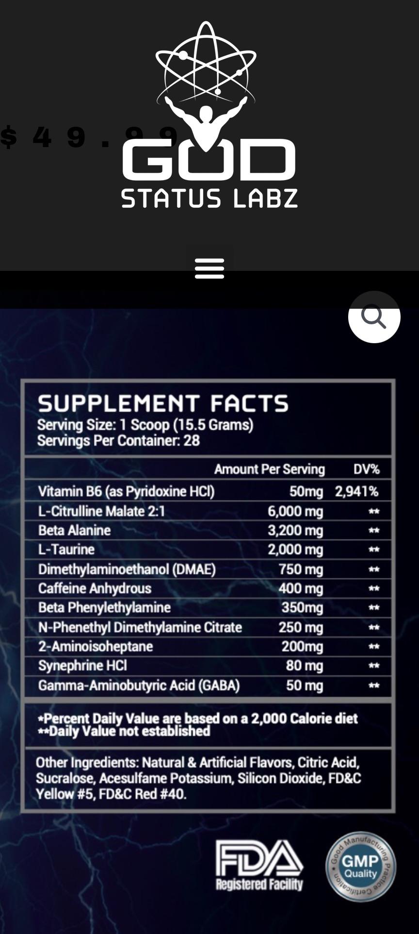God Status Labz Ares contains 400mg of total caffeine per serving.