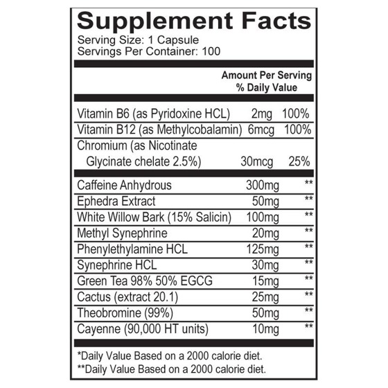 | Ephedra Extract | 50 mg |