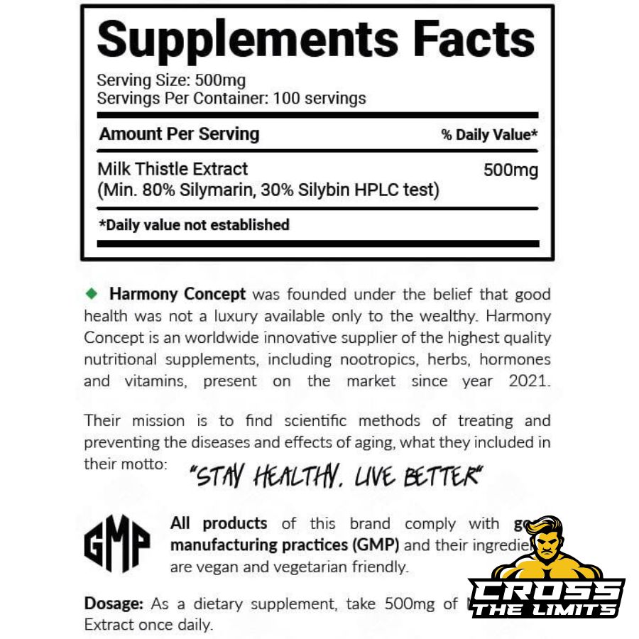 | Milk Thistle Extract (Min. 80% Silymarin, 30% Silybin HPLC test) | 500 mg |