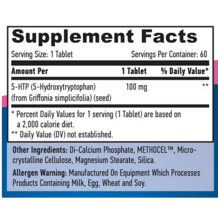 | 5-HTP (5-Hydroxytryptophan) (from Griffonia simplicifolia) (seed) | 100 mg |