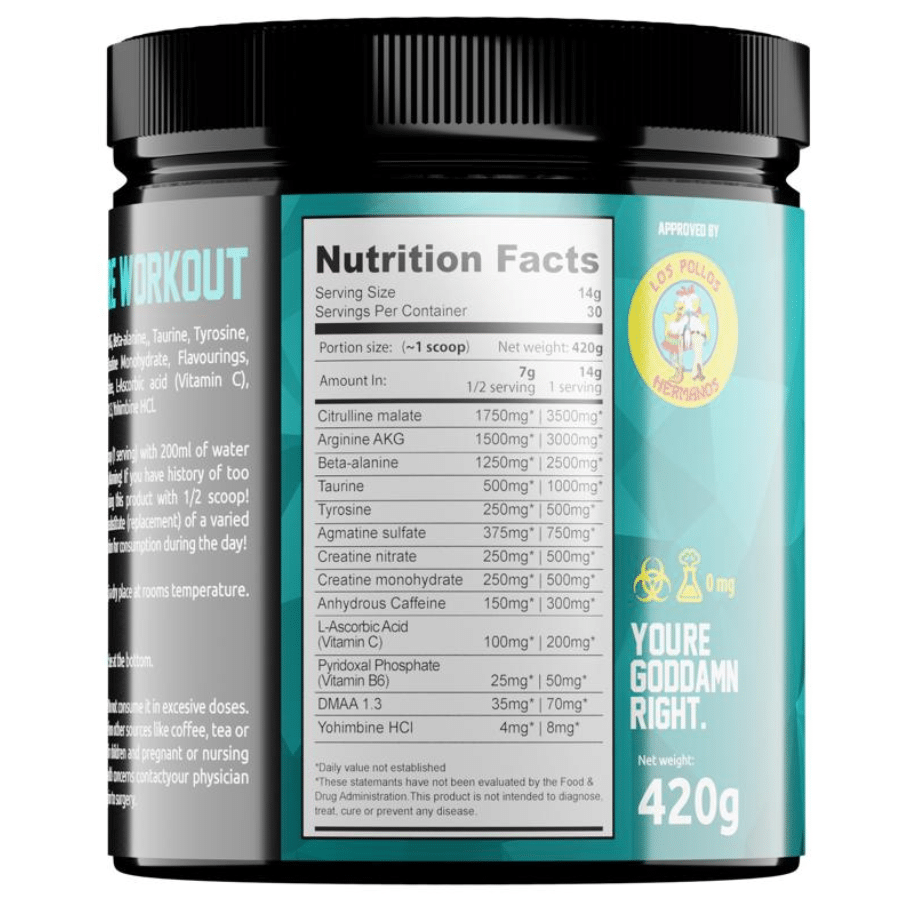 Heisenberg Pre-Workout 30servings is classified as Extreme intensity. This is a maximum intensity pre-workout containing exotic stimulants. It is designed for experienced users only and should not be used daily.