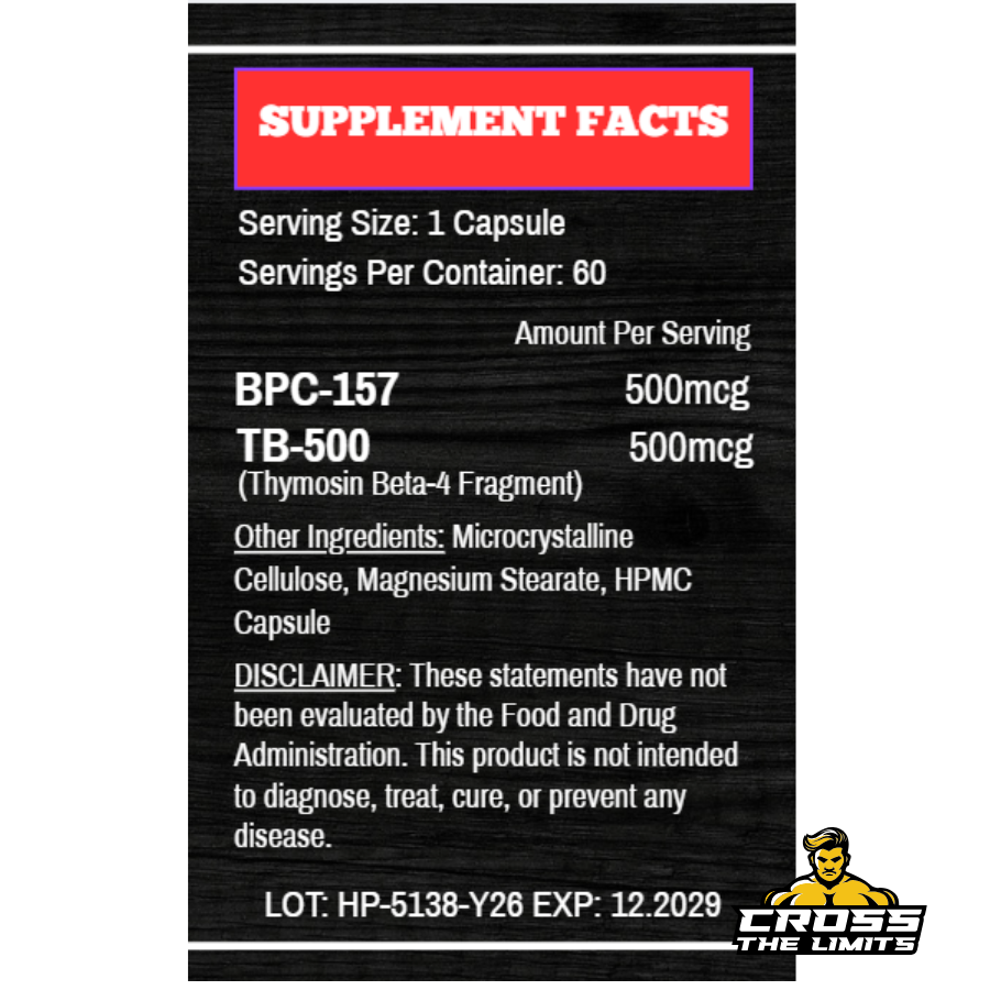 Helvetix Pharma BPC-500 + TB-500 –1000mcg Advanced Regeneration Support 60 Caps FAQs