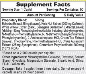 | Synephrine (from Citrus Aurantium Extract) | 25 mg |