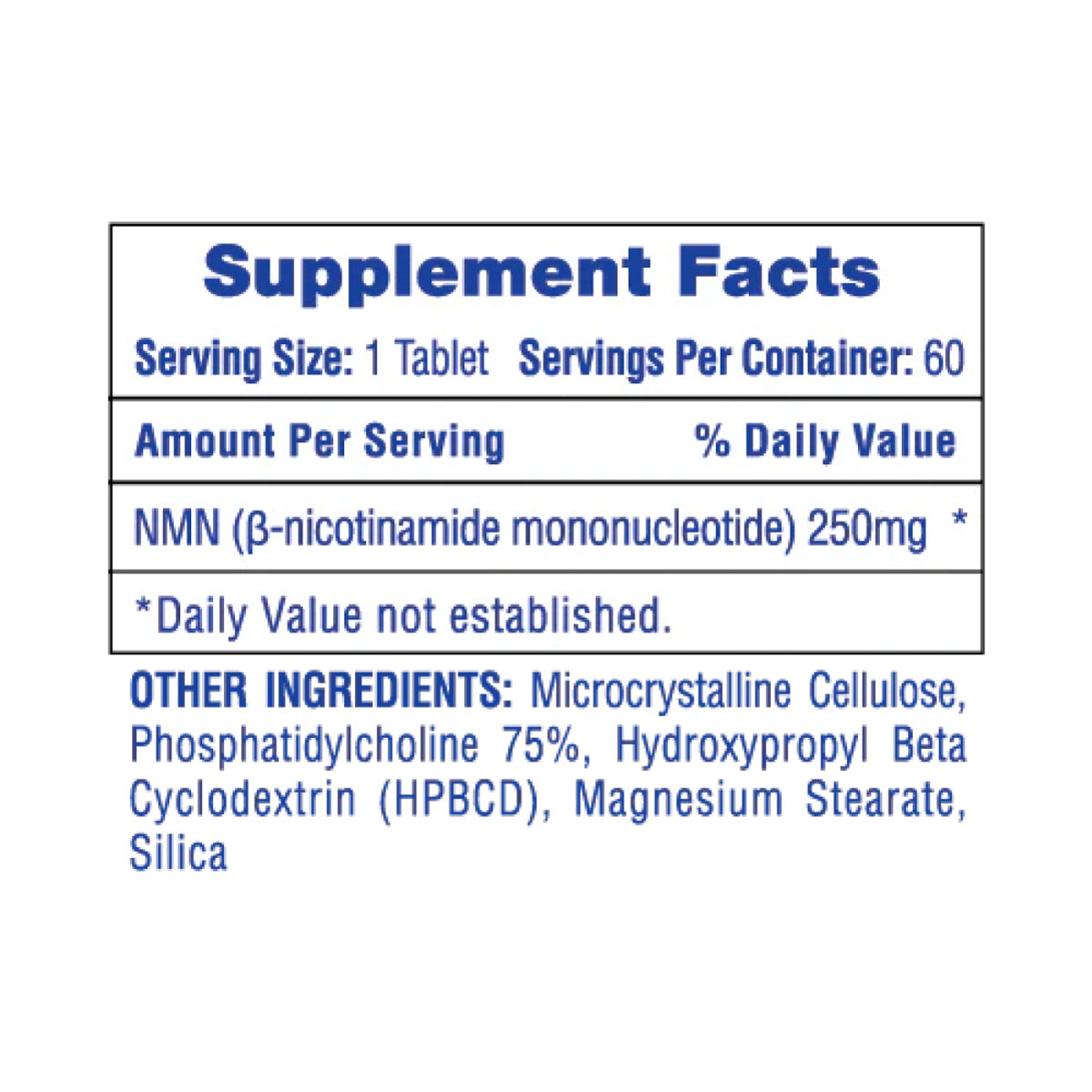 | NMN (β-nicotinamide mononucleotide) | 250 mg |
