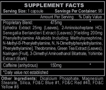 | Ephedra Extract (Leaves) | 25 mg |