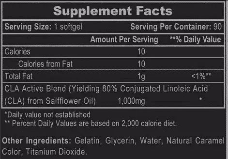 | Conjugated Linoleic Acid (CLA) (from Safflower Oil) | 800 mg |