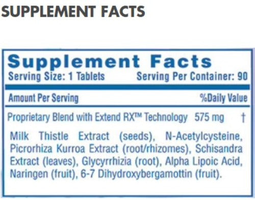 Milk Thistle Extract (seeds)N-AcetylcysteinePicrorhiza Kurroa Extract (root/rhizomes)Schisandra Extract (leaves)Glycyrrhizia (root)Alpha Lipoic AcidNaringen (fruit)6-7 Dihydroxybergamottin (fruit)