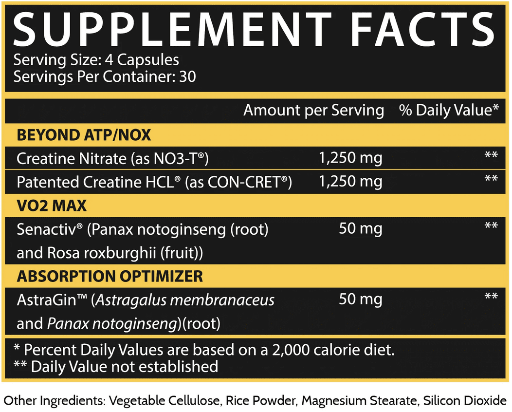 | Creatine Nitrate (as N03T®) | 2,500 mg |