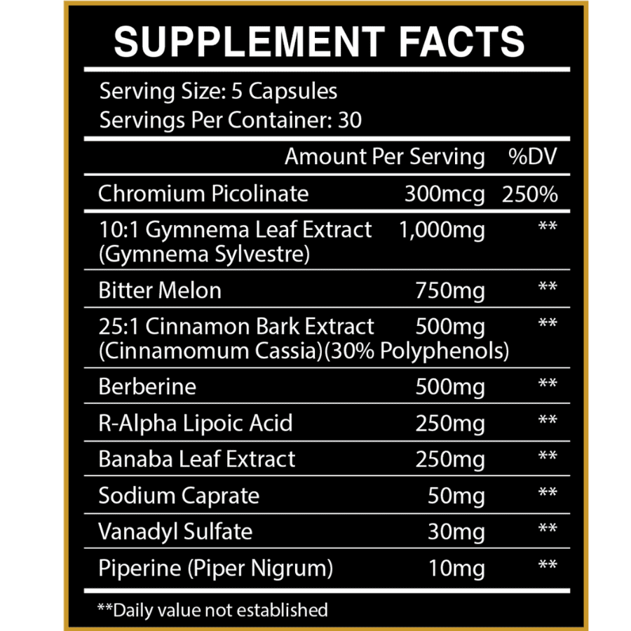 | 10:1 Gymnema Leaf Extract (Gymnema Sylvestre) | 1,000 mg |