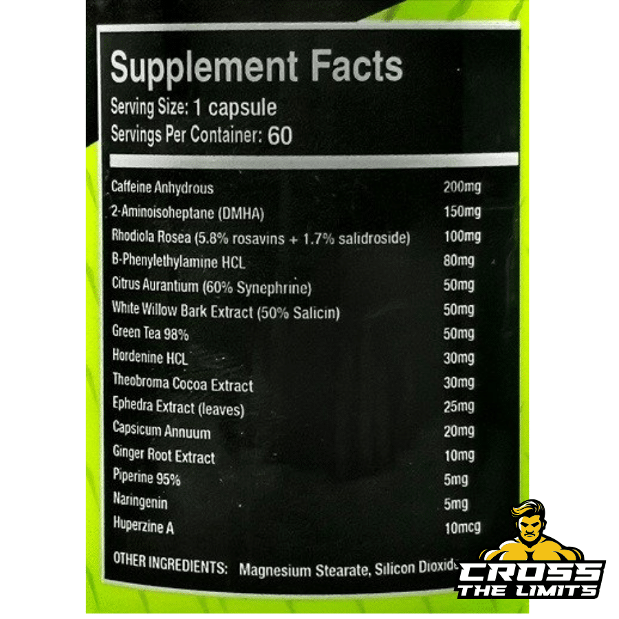Maximum intensity warning! Contains exotic stimulants (DMHA, DMBA, DMAA) for experienced users only. Not for daily use – cycle with milder options throughout your week. Handle with respect.