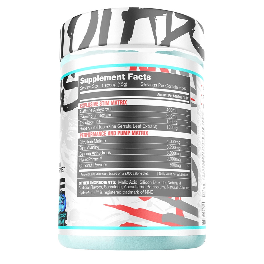 Maximum intensity warning! Contains exotic stimulants (DMHA, DMBA, DMAA) for experienced users only. Not for daily use – cycle with milder options throughout your week. Handle with respect.