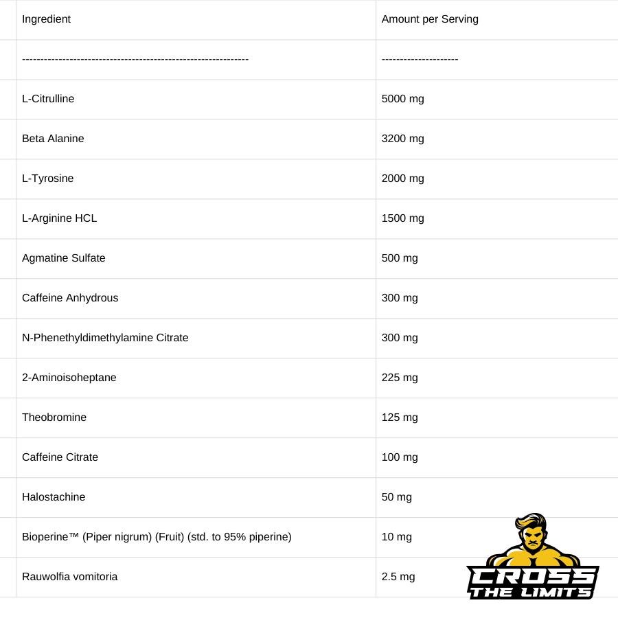 | Beta Alanine | 3,200 mg |