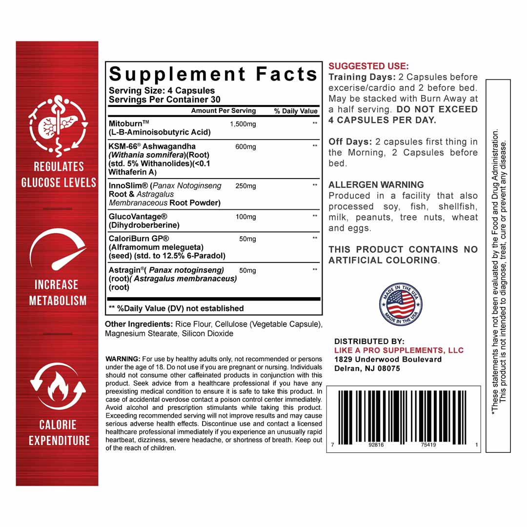 | Mitoburn⢠(L-B-Aminoisobutyric Acid) | 1,500 mg |