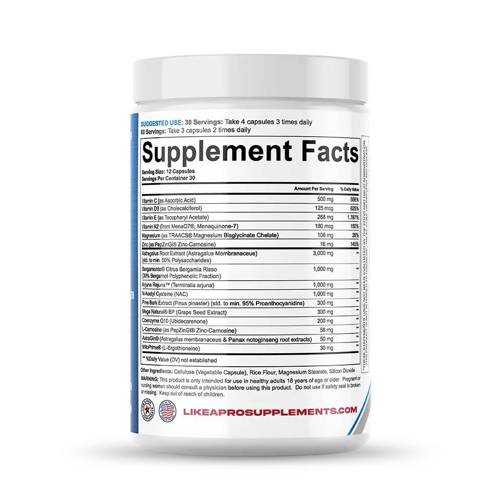 | Astragalus Root Extract (Astragalus Membranaceus) (std. to min. 50% Polysaccharides) | 3,000 mg |