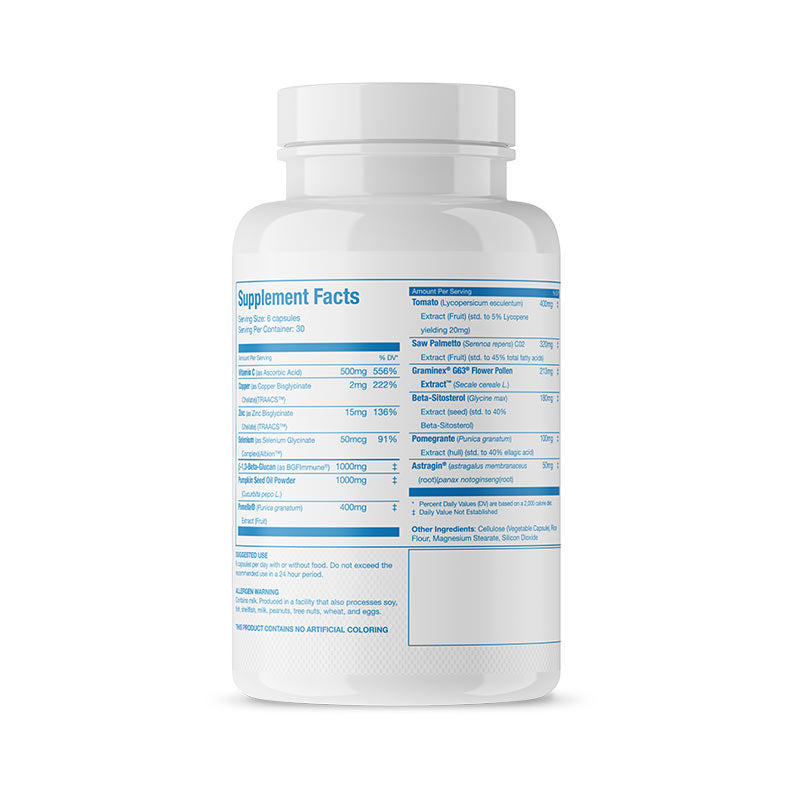 | Beta-Sitosterol (Glycine max) Extract (seed) (std. to 40% Beta-Sitosterol) | 180 mg |