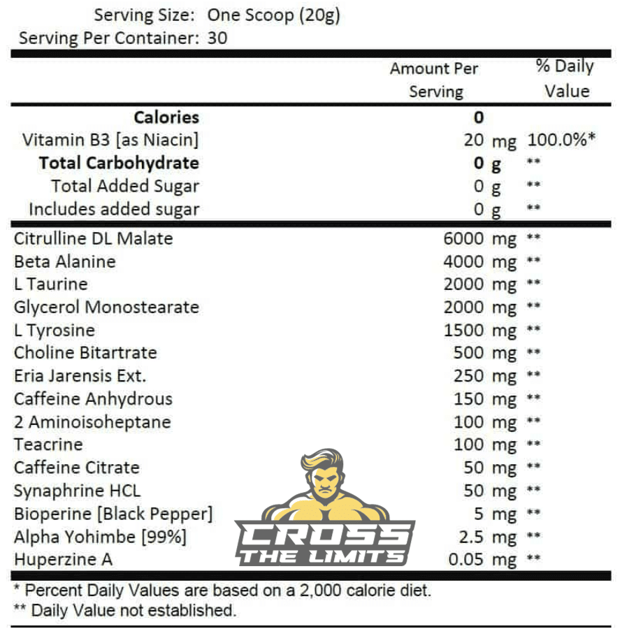 Maximum intensity warning! Contains exotic stimulants (DMHA, DMBA, DMAA) for experienced users only. Not for daily use β cycle with milder options throughout your week. Handle with respect.
