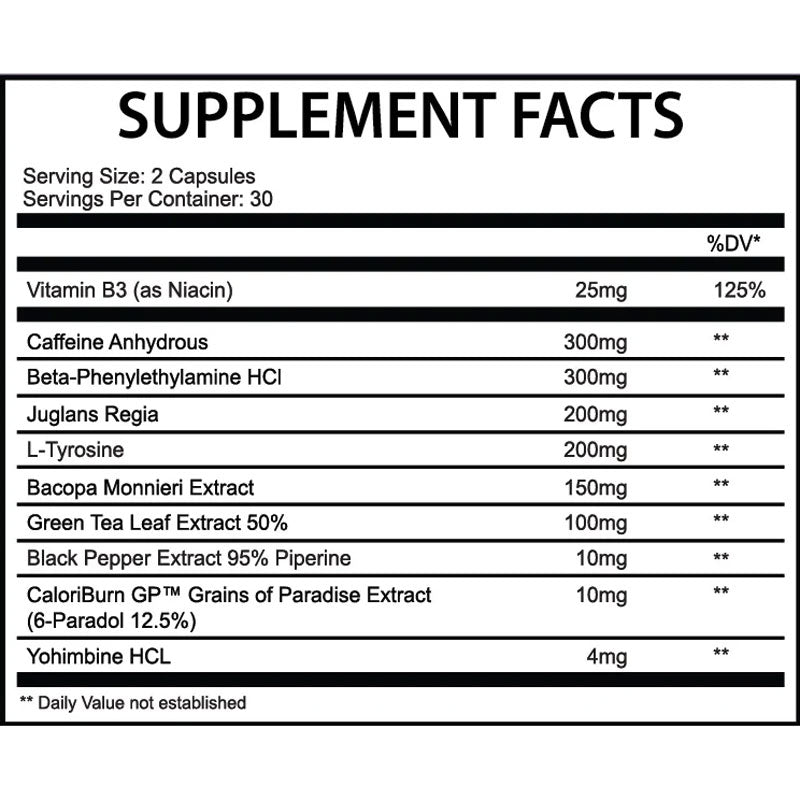 | Caffeine Anhydrous | 300 mg |