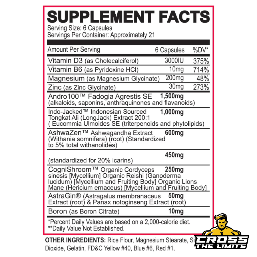 | Andro100™ Fadogia Agrestis SE (alkaloids, saponins, anthraquinones and flavanoids) | 1,500 mg |
