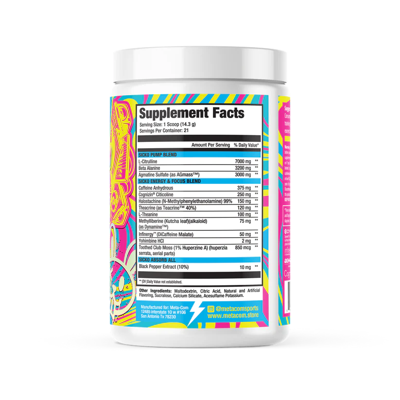 Meta-Com Sicko Mode *REMIX* contains 413mg of total caffeine per serving.