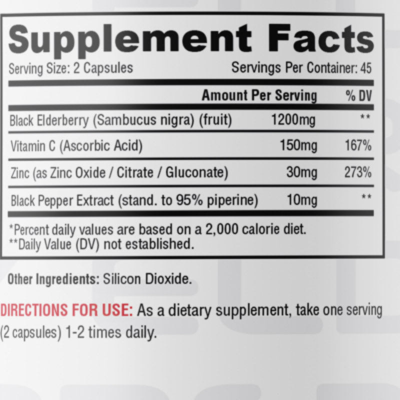 | Black Elderberry (Sambucus nigra) (fruit) | 1,200 mg |