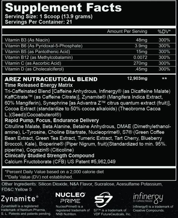 )Citrulline MalateBeta AlanineBetaine AnhydrousDMAE (Dimethylethanolamine)L-TyrosineCholine BitartrateNucleoprime