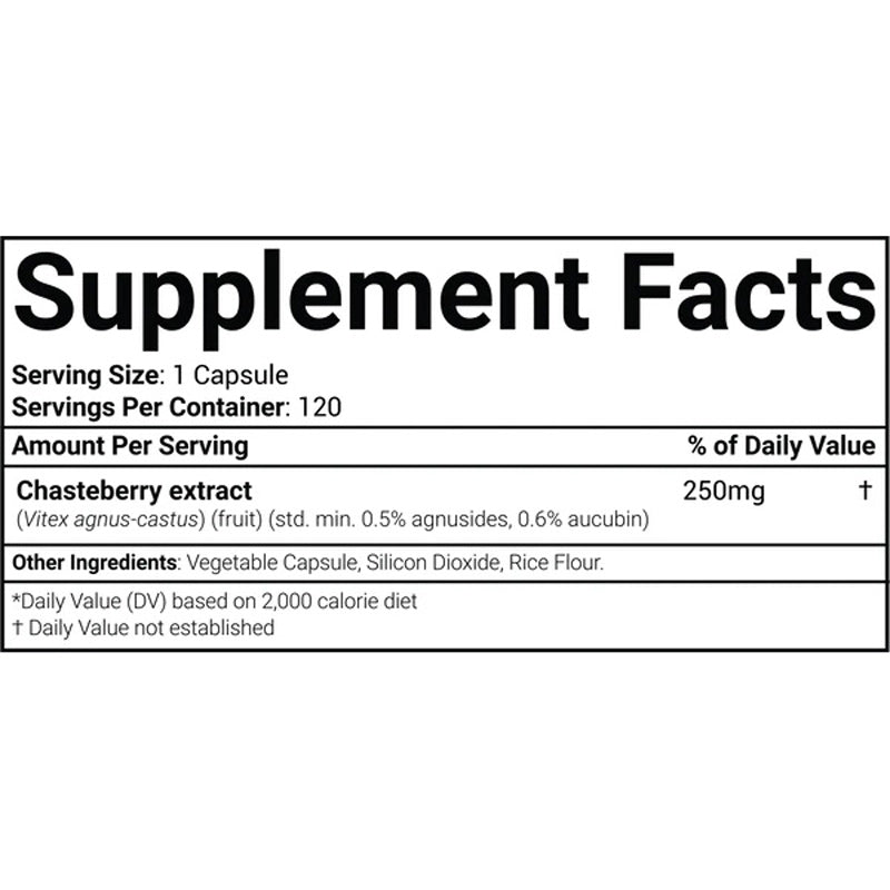| Chasteberry extract (Vitex agnus-castus) (fruit) (std. min. 0.5% agnusides, 0.6% aucubin) | 250 mg |