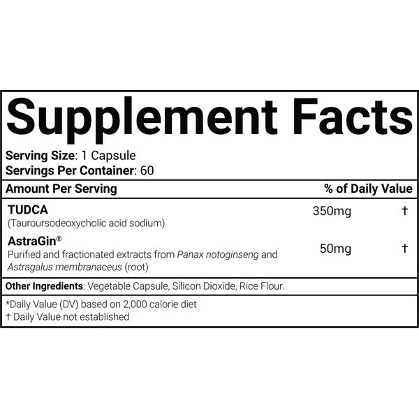 | TUDCA (Tauroursodeoxycholic acid sodium) | 350 mg |