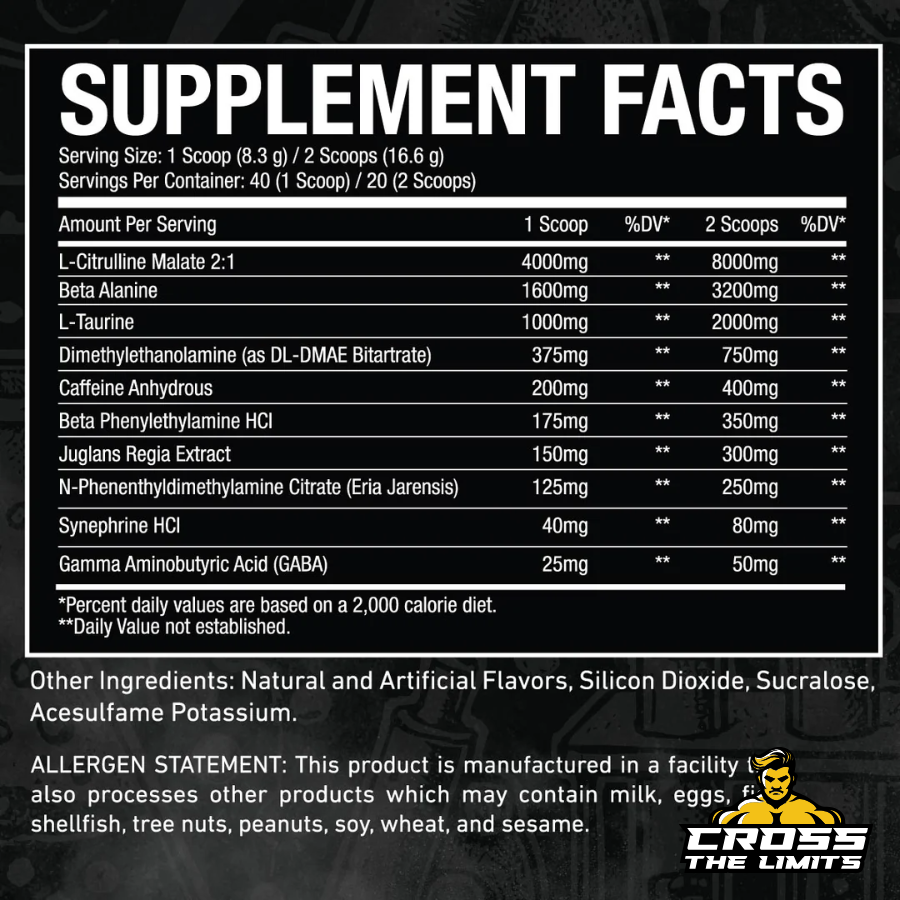 Maximum intensity warning! Contains exotic stimulants (DMHA, DMBA, DMAA) for experienced users only. Not for daily use – cycle with milder options throughout your week. Handle with respect.