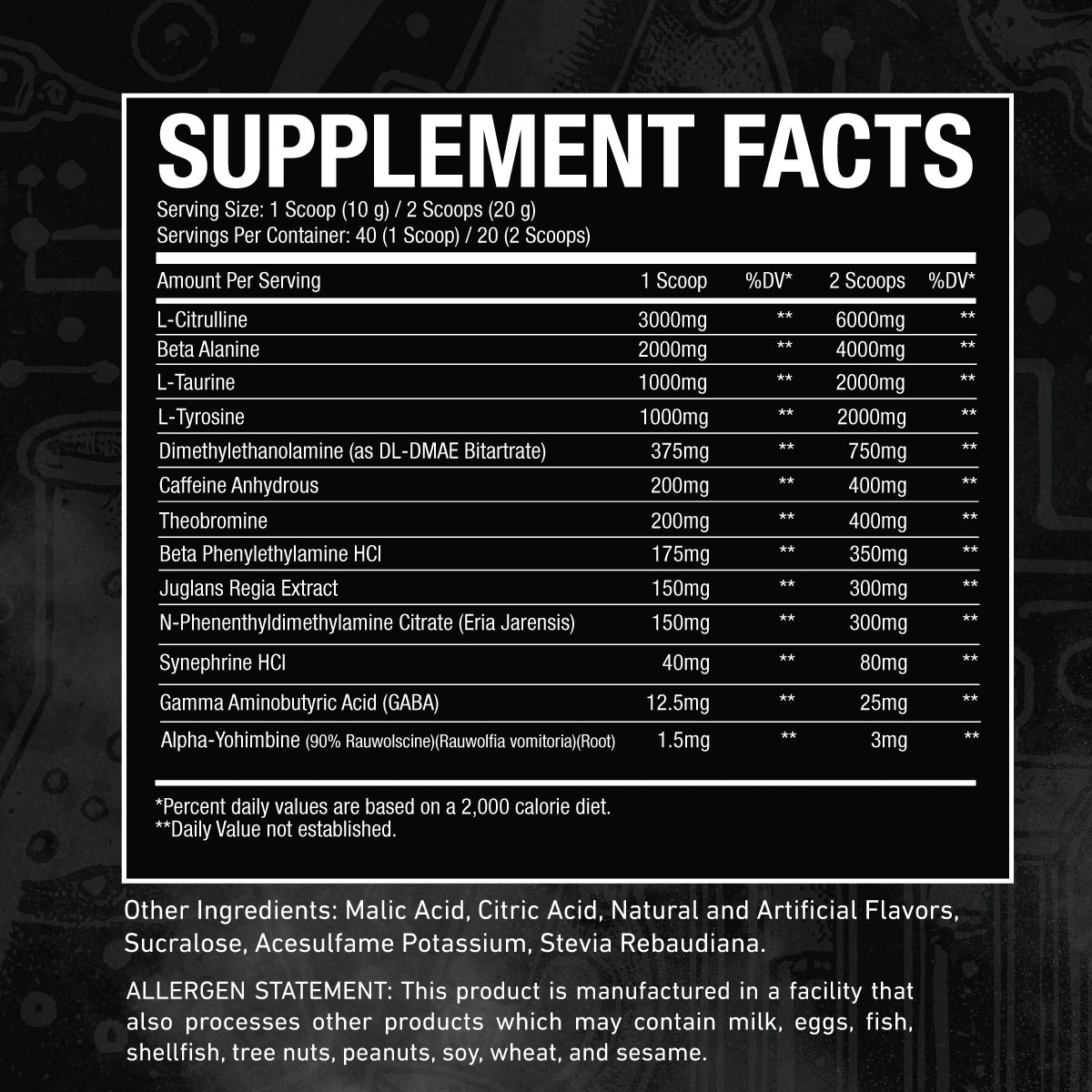 Maximum intensity warning! Contains exotic stimulants (DMHA, DMBA, DMAA) for experienced users only. Not for daily use β cycle with milder options throughout your week. Handle with respect.