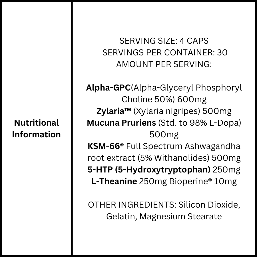 | Mucuna Pruriens (Std. to 98% L-Dopa) | 500 mg |