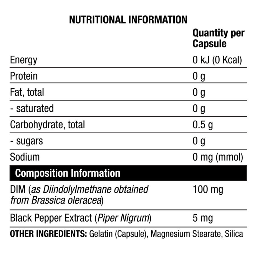 | DIM (as Diindolylmethane obtained from Brassica oleracea) | 100 mg |