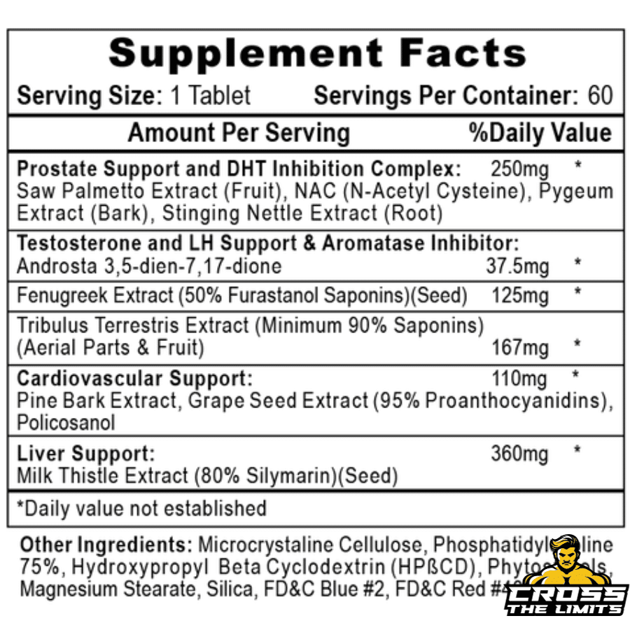 Saw Palmetto Extract (Fruit)NAC (N-Acetyl Cysteine)Pygeum Extract (Bark)Stinging Nettle Extract (Root)Pine Bark ExtractGrape Seed Extract (95% Proanthocyanidins)PolicosanolMilk Thistle Extract (80% Silymarin)(Seed)