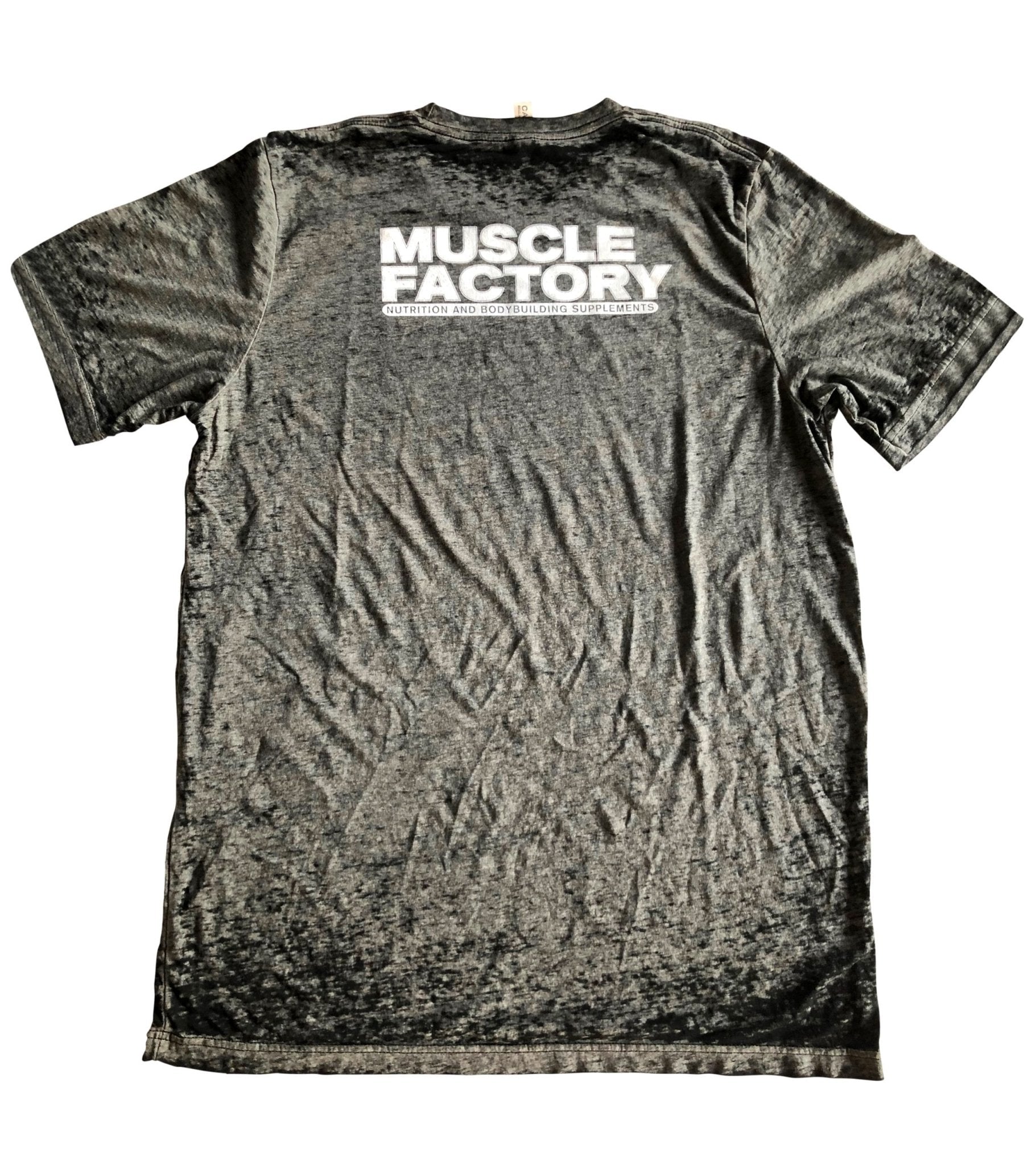Muscle Factory Distressed Tee is available from retailers including Muscle Factory SC. Prices range from $29.99 USD.