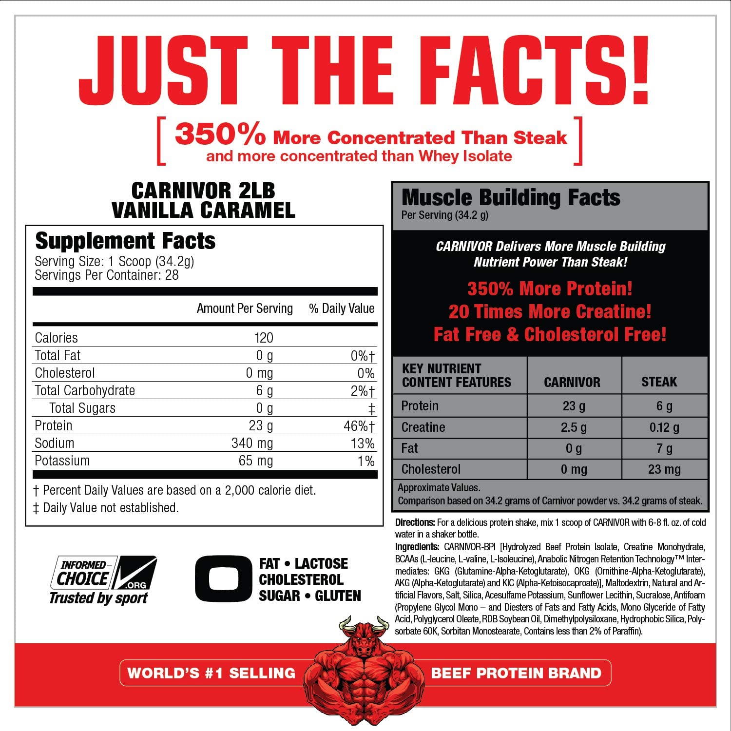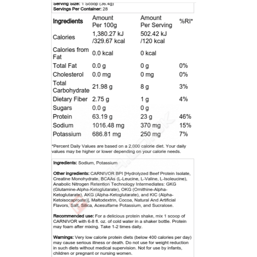 Listed as: Carnivor MuscleMeds 1792 - 2038 grams Bioengineered Beef Protein Isolate