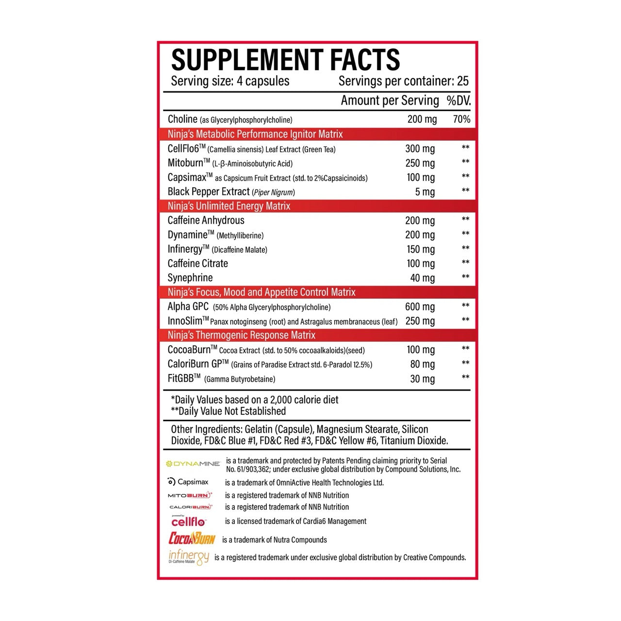 Ninja Burn Fat Burner contains 363mg of total caffeine per serving.