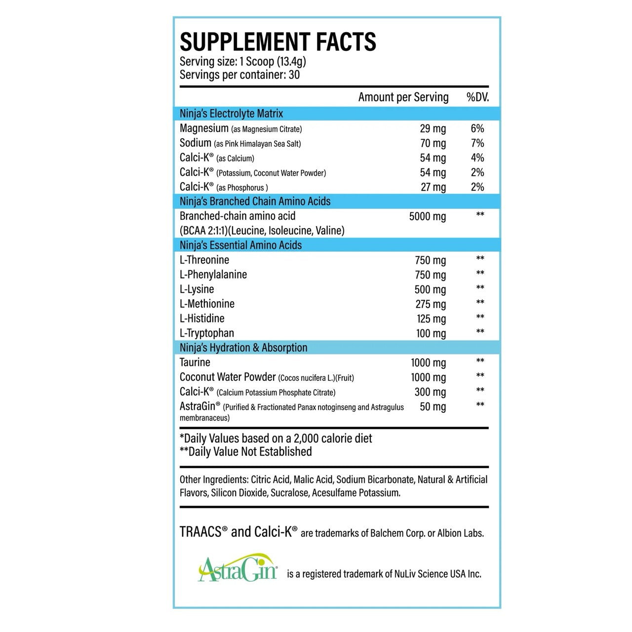 Ninja Recovery Amino Acids contains 0mg of total caffeine per serving.