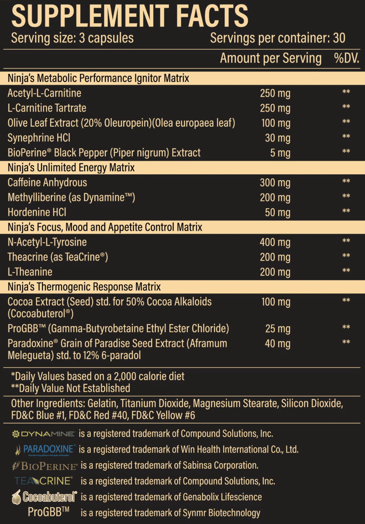 Ninja Burn by Ninja Up contains 300mg of total caffeine per serving.