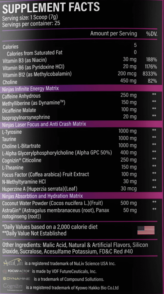 Ninja Mode by Ninja Up contains 325mg of total caffeine per serving.