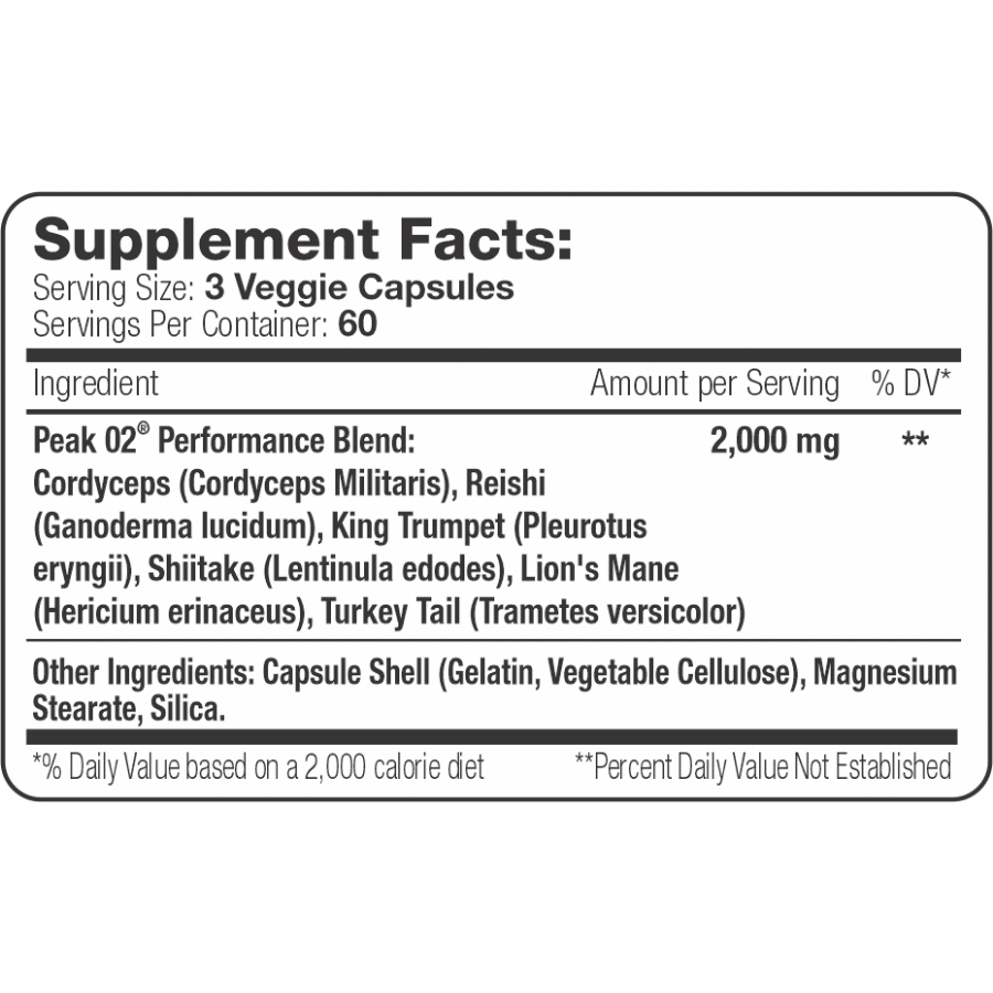 SNS PEAK02 Capsules – 180 Veg Caps contains 0mg of total caffeine per serving.