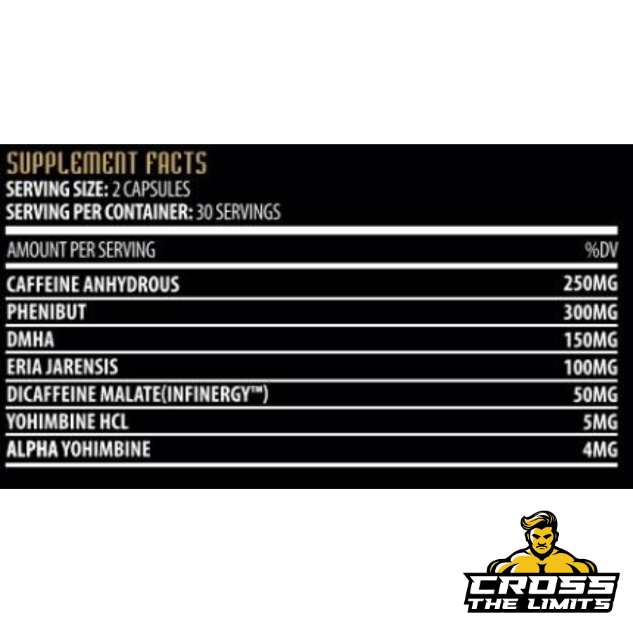 Maximum intensity warning! Contains exotic stimulants (DMHA, DMBA, DMAA) for experienced users only. Not for daily use – cycle with milder options throughout your week. Handle with respect.