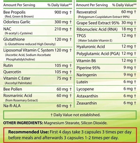 | Bee Propolis (Red, Green & Brown) | 900 mg |