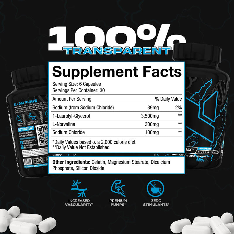 24 hr Pump contains 0mg of total caffeine per serving.