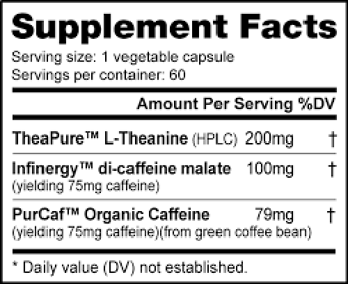 | Infinergy™ di-caffeine malate (yielding 75 mg caffeine) | 100 mg |