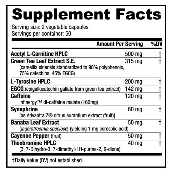 | Synephrine [as Advantra Z® citrus aurantium extract (fruit)] | 60 mg |