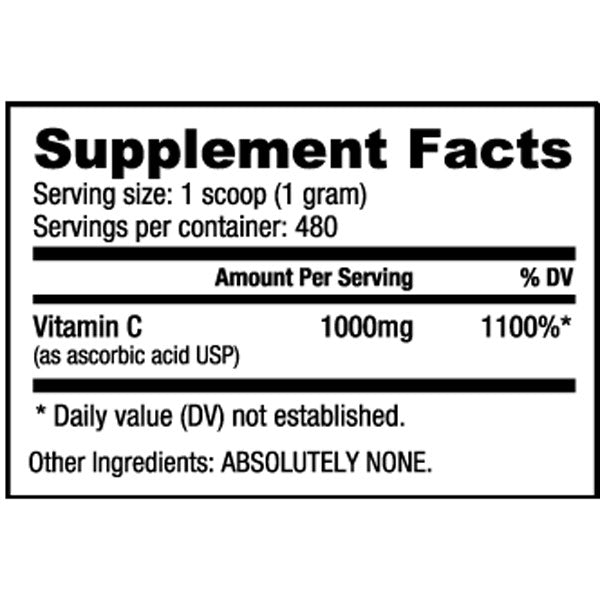 | Vitamin C (ascorbic acid) | 1,000 mg |