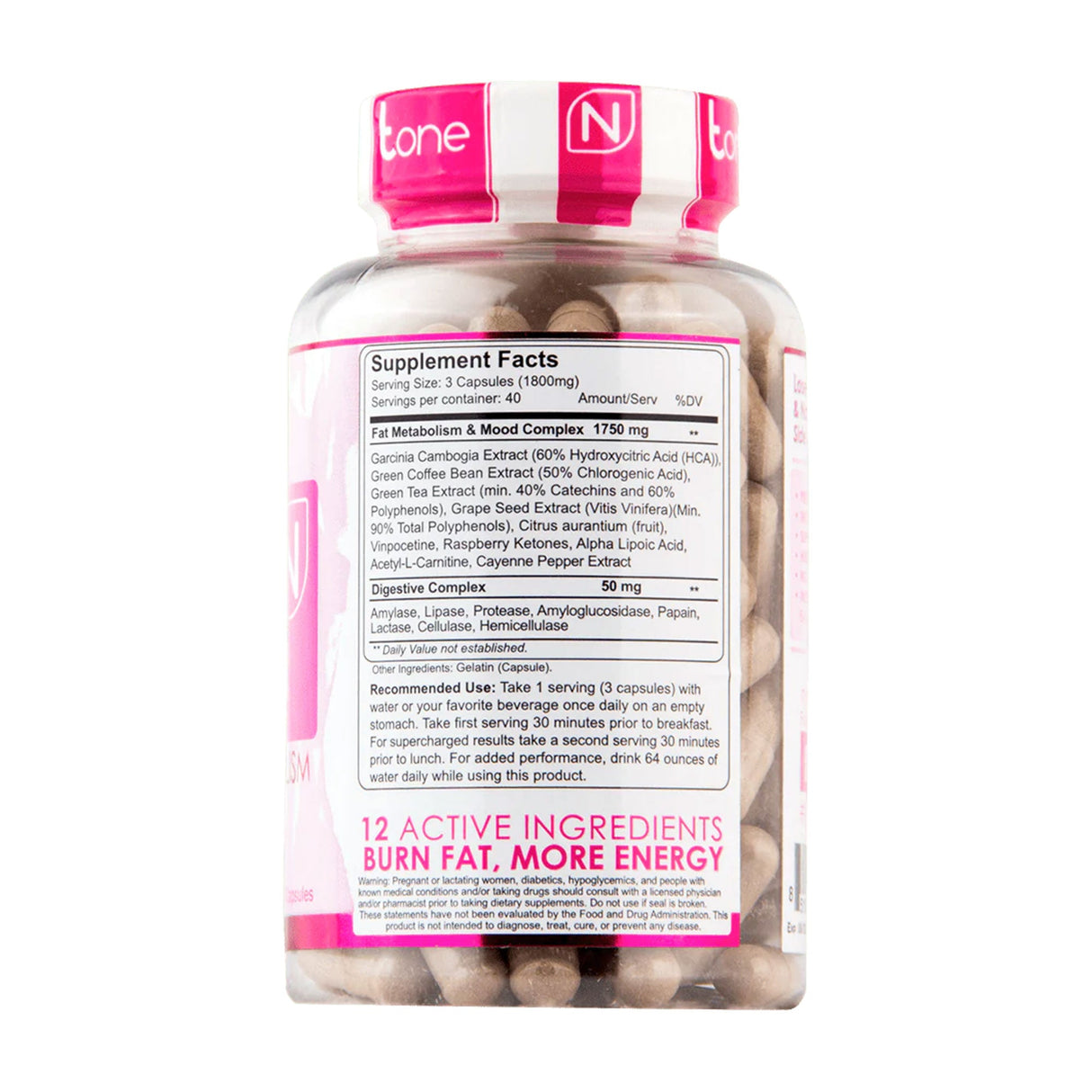 Garcinia Cambogia Extract (60% Hydroxycitric Acid (HCA))Green Coffee Bean Extract (50% Chlorogenic Acid)Green Tea Extract (min. 40% Catechins and 60% Polyphenols)Grape Seed Extract (Vitis Vinifera)(Min. 90% Total Polyphenols)Citrus aurantium (fruit)VinopocetineRaspberry KetonesAlpha Lipoic AcidAcetyl-L-CarnitineCayenne Pepper ExtractAmylaseLipaseProteaseAmyloglucosidasePapainLactaseCellulaseHemicellulase