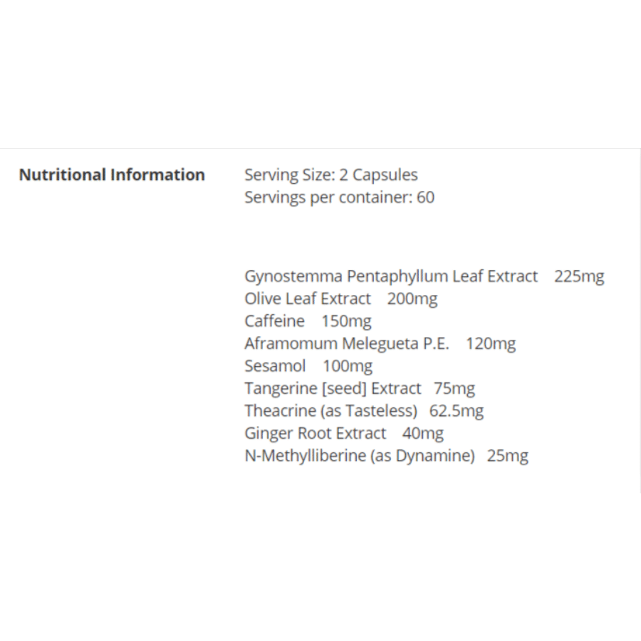 | Theacrine (as Tasteless) | 62.5 mg |